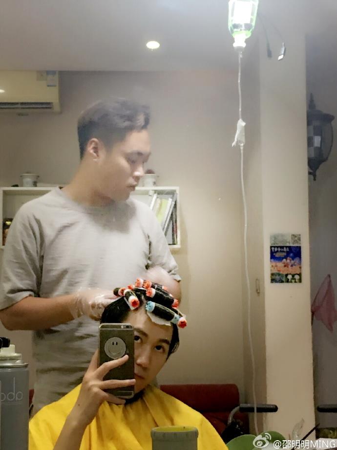 边烫发边打吊瓶