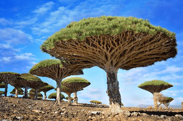 龙血树也是一种非常古老的树种,身上能够流淌出红色的枝叶,因此而得名,这种树的外形看上去,有些像外星树种,是国家二级保护植物。