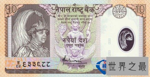 尼泊尔的10元卢比钞票有一个清晰的聚合物视窗——一般的纸张很难或不可能复制,细细的金属丝还融入到钞票之中。