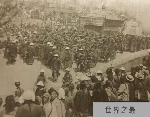 上图照片:给光绪帝抬棺的人数