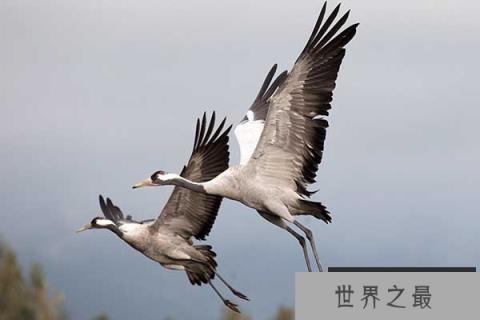 灰鹤是一种大型涉禽,它的全身呈现灰色有着超长的大腿,常常在高度超海拔8000的地方飞行最高可以达到海拔10000米,用来躲避老鹰的攻击。它有着固定的迁徙时间和地点,会自动的排列成人字型和“V”型,