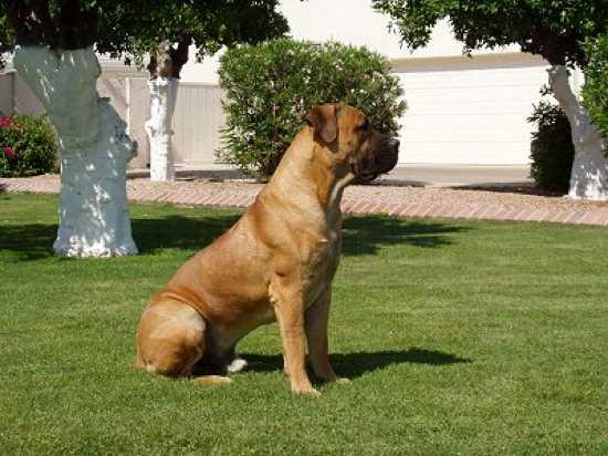 Boerboel来自南非,外形酷似一头健壮的斗牛獒犬。这个名字大致是从荷兰语翻译过来的“农场狗”。它是由各种非洲本土的狗和看门狗繁殖而来的,是由欧洲殖民者,尤其是荷兰人带到这个国家的。20世纪20年代末,钻石公司戴比尔斯(De Beers)把藏獒带到南非,以保护它们的矿山,它们为现代藏獒的发展做出了巨大贡献,是优秀的家庭看护人,没有公开的侵略性,据说他们也非常喜欢孩子。但是因为体重可以轻松超过150磅,因此它们在丹麦被禁止。