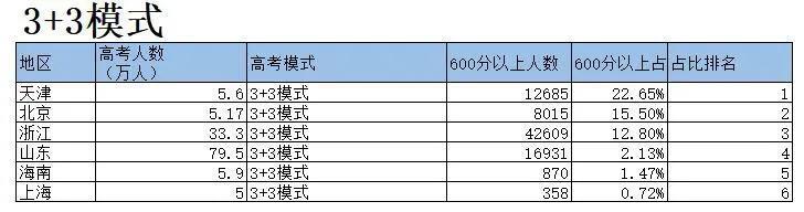 3+3模式第一名是:天津