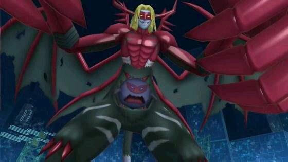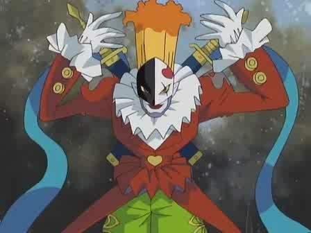 黑暗四天王的老大,外表看似是小丑,诙谐、幽默,其本质残暴不堪,背后的双手剑能够斩断任何反抗他的物体,在与太一一行人战斗时以一敌二,打败钢铁加鲁鲁和战斗暴龙兽,并且凭一己之力将其余数码宝贝们变成玩偶挂于腰间,最终被希望的徽章召唤的神圣天使兽的天国之门打败,封印在异次元界。