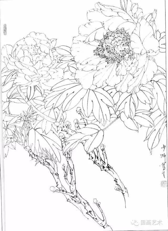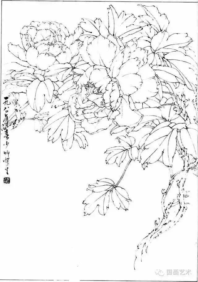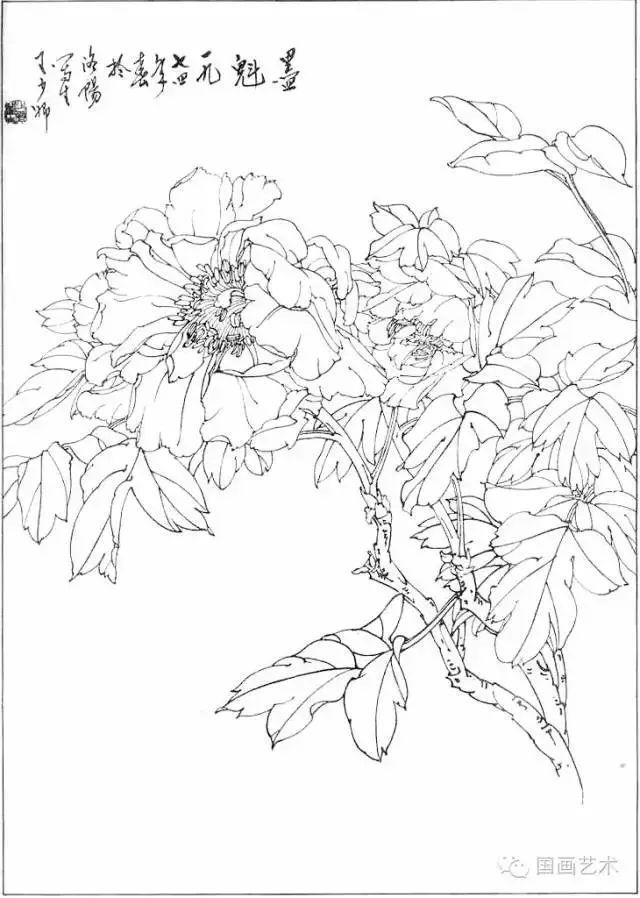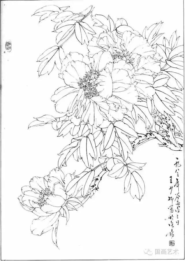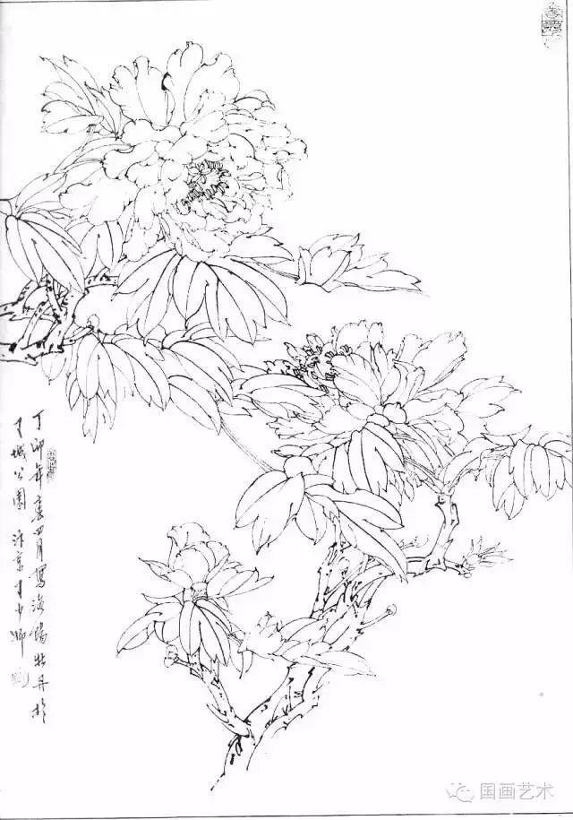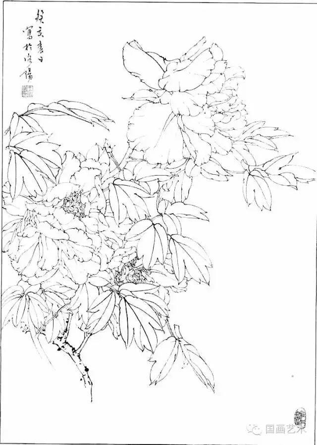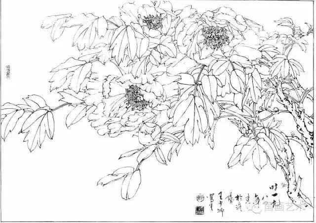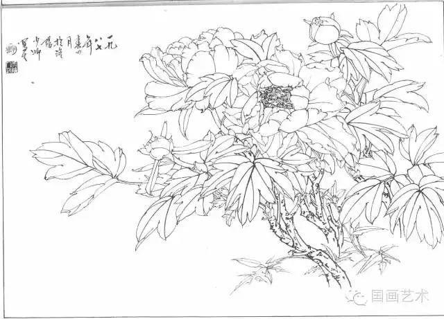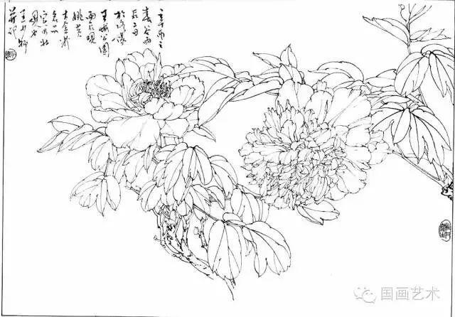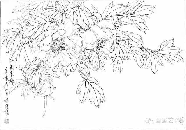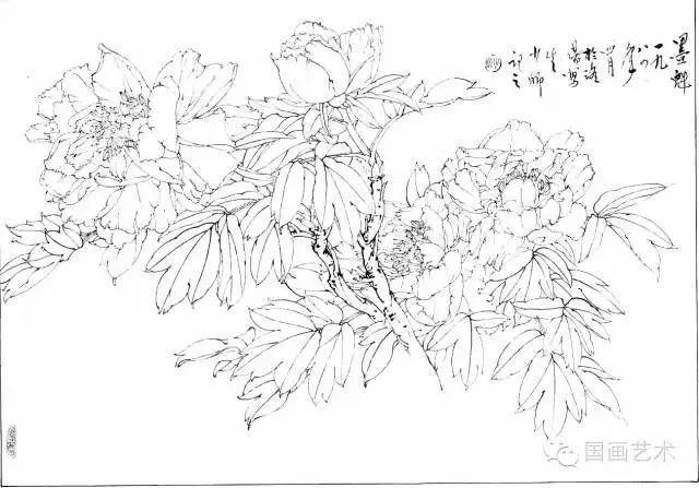 分享一组牡丹白描作品,值得珍藏