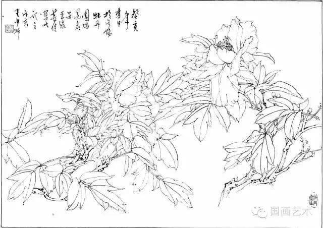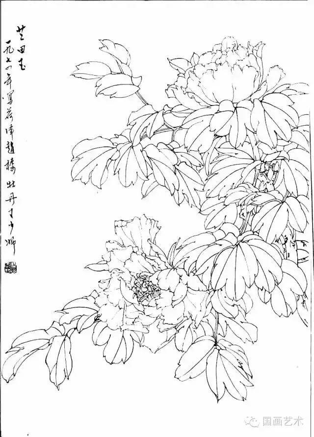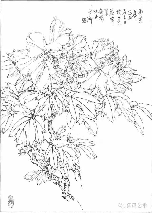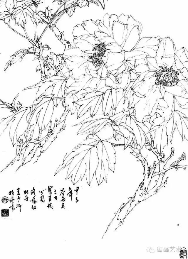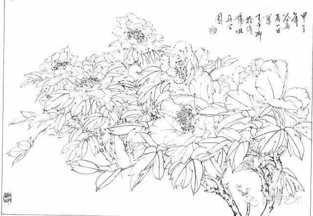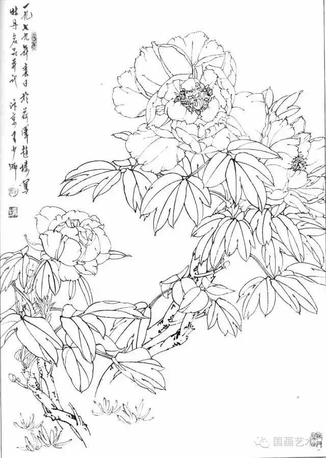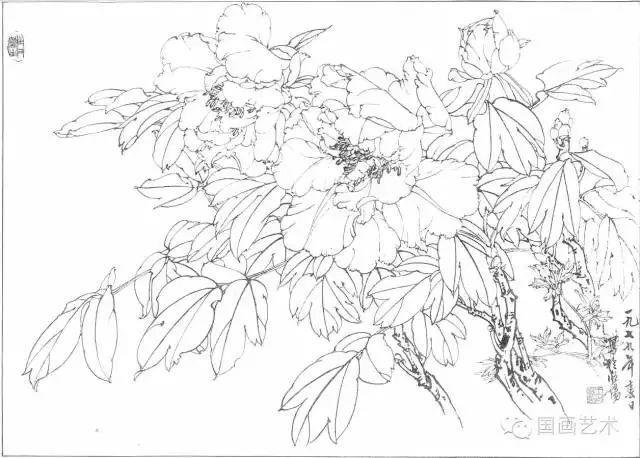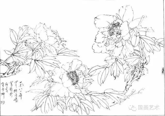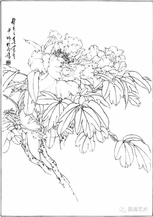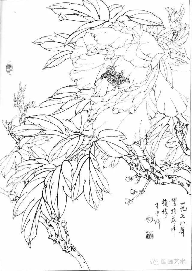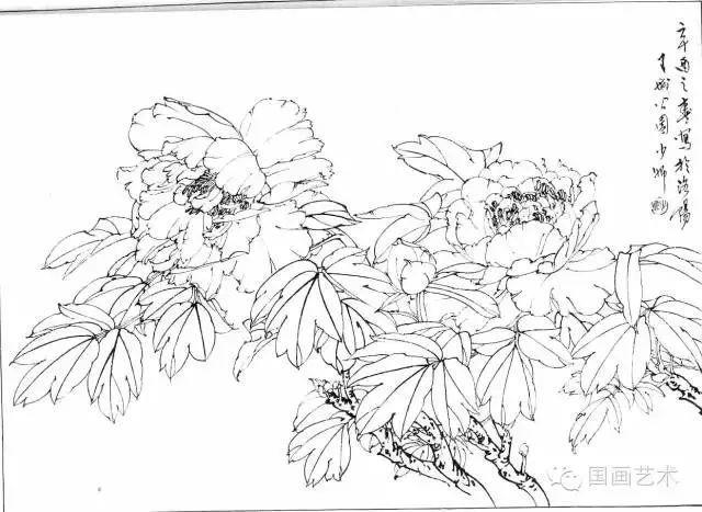 分享一组牡丹白描作品,值得珍藏