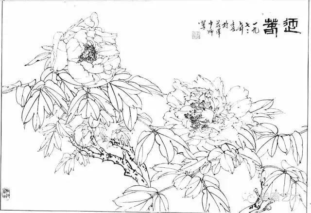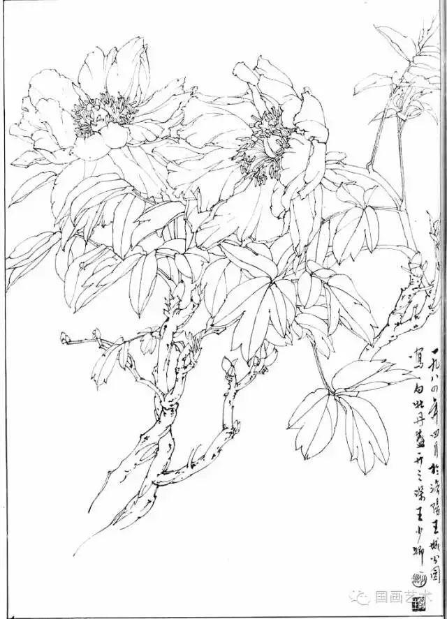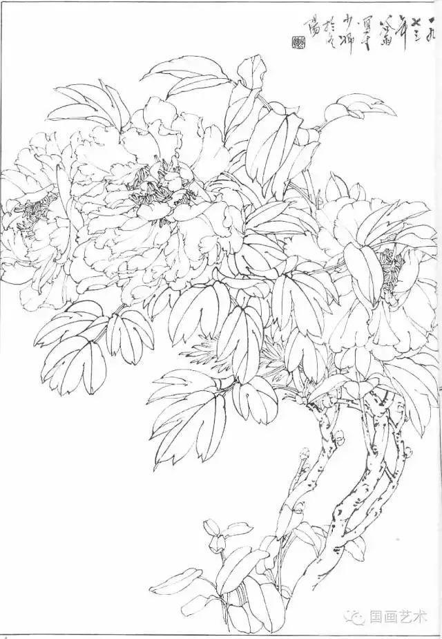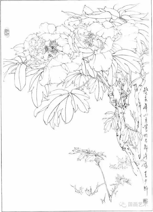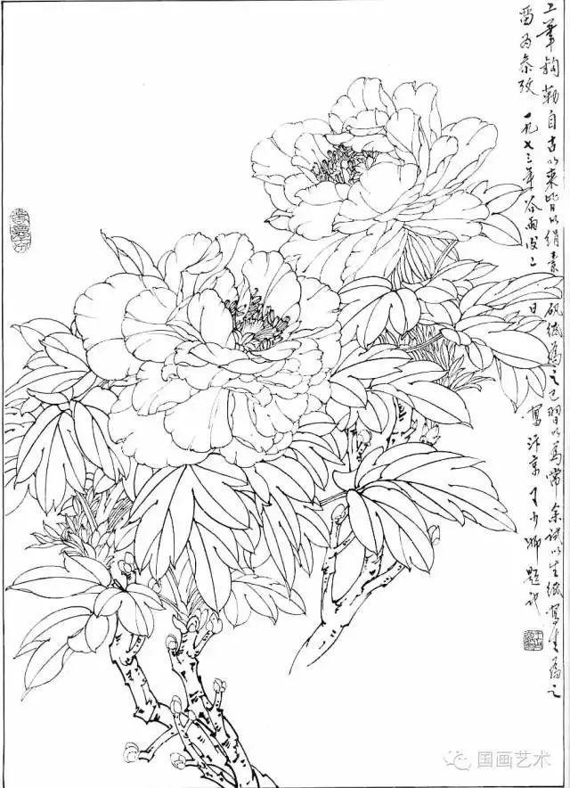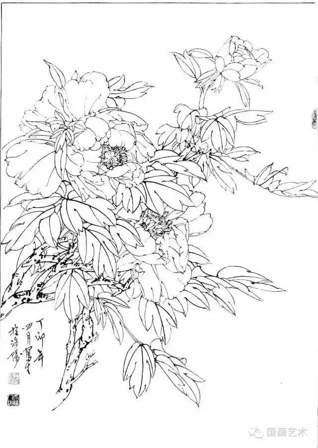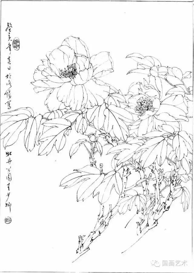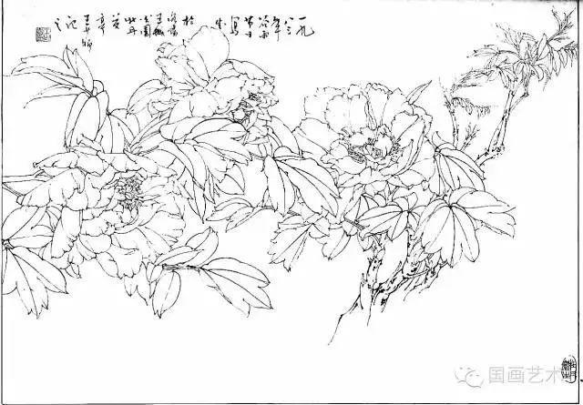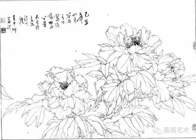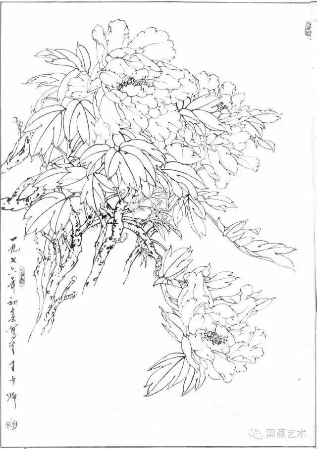 分享一组牡丹白描作品,值得珍藏