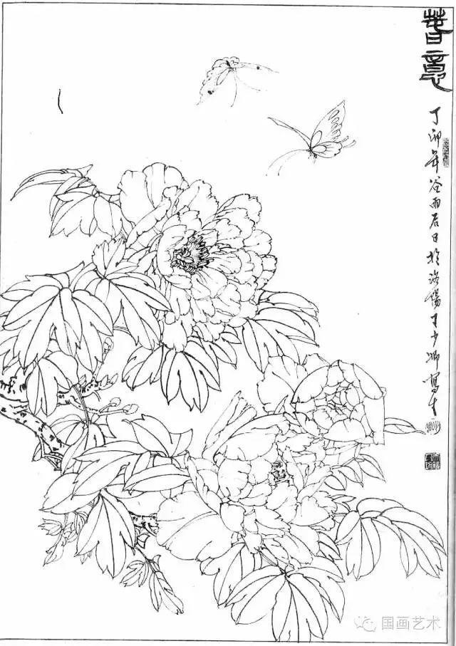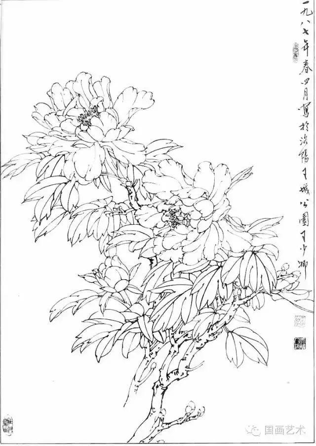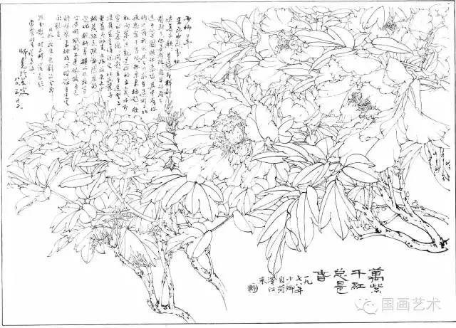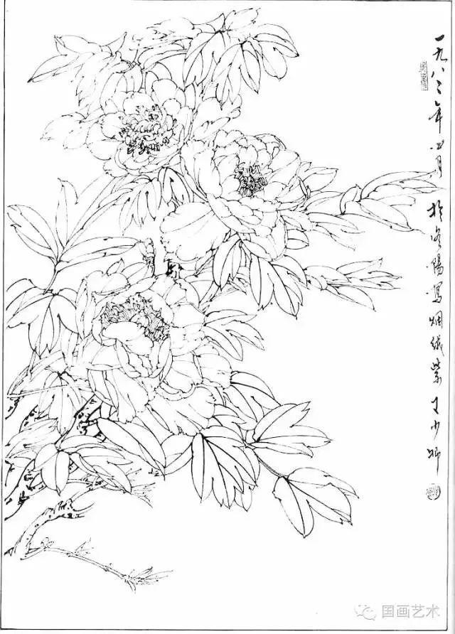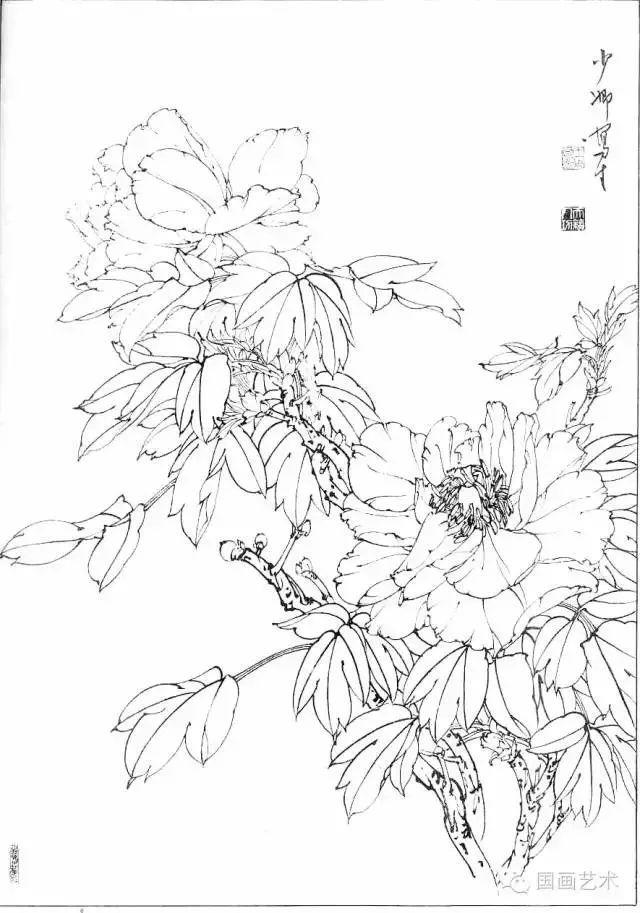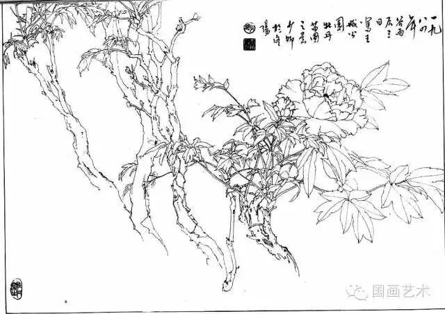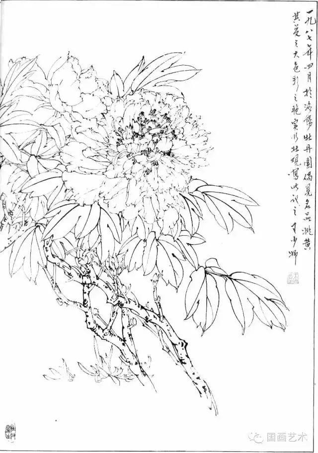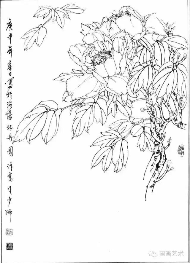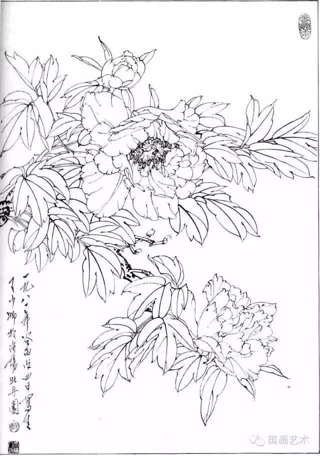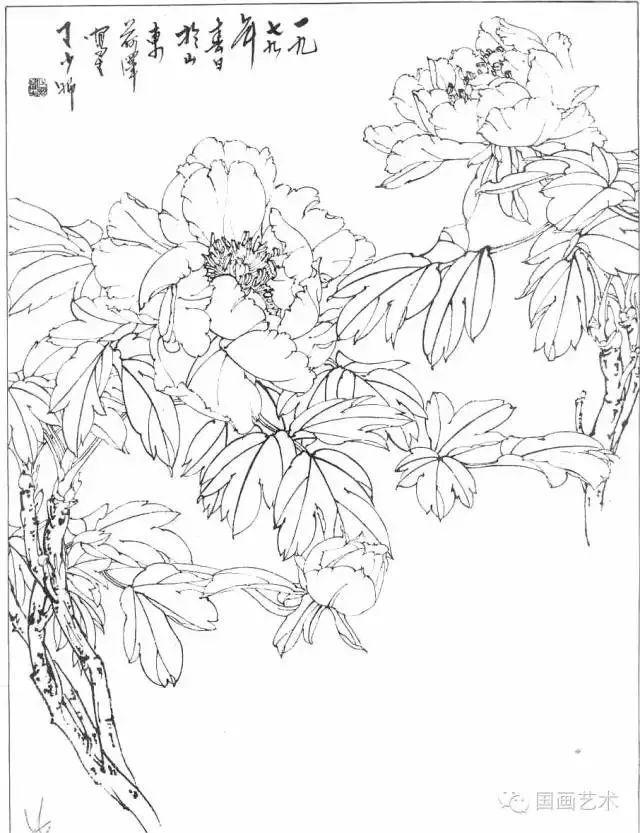 分享一组牡丹白描作品,值得珍藏