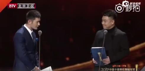 黄晓明本场担任颁奖嘉宾,和国乒男队教练、奥运冠军王皓一起上台颁发“最佳女运动员奖”和“最佳组合奖”,其中“最佳女运动员奖”最终颁给了女乒领军人物丁宁,“最佳组合奖”颁给了中国花滑双人组隋文静/韩聪。