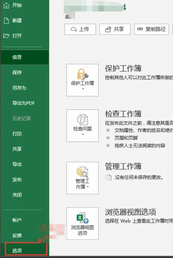 第一步 点击Excel文档左上角的“文件”,然后进入功能设置界面,点击选项
