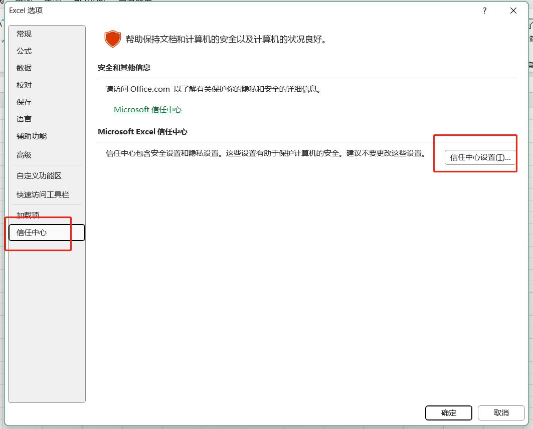第二步 进入后再左侧最下方点击“信任中心”,再点右侧信任中心设置