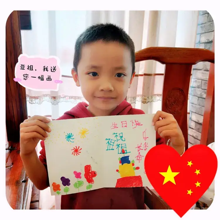 幸福和快乐在每个人的脸上荡漾,四代人把最真诚的祝福送给老奶奶。特别是重孙尹梓皓用自己创作一幅画“祝祖祖长寿百岁”表达祝福时,曾祖母更是格外高兴,眼睛出奇的有神和满满的慈爱。
