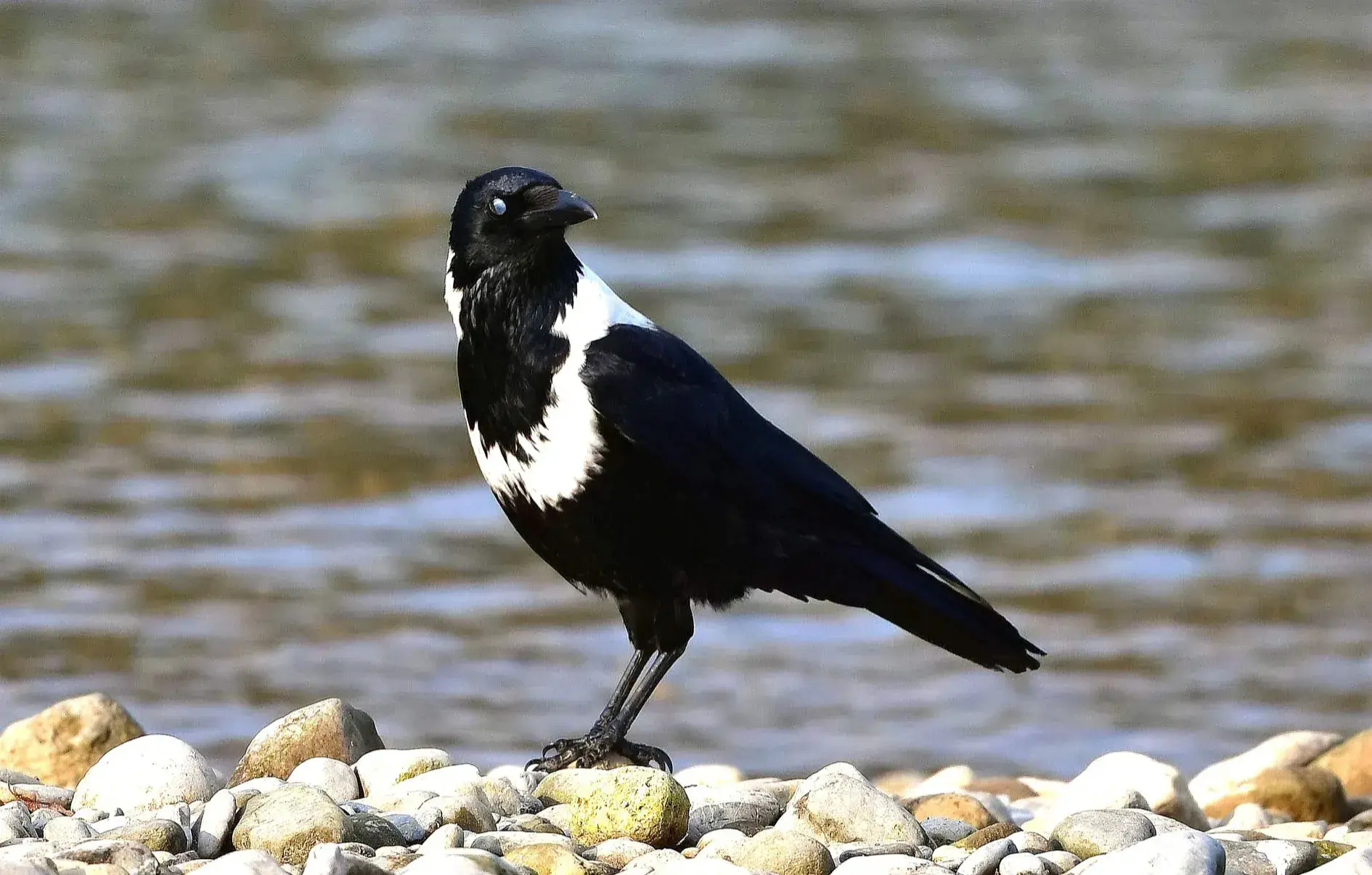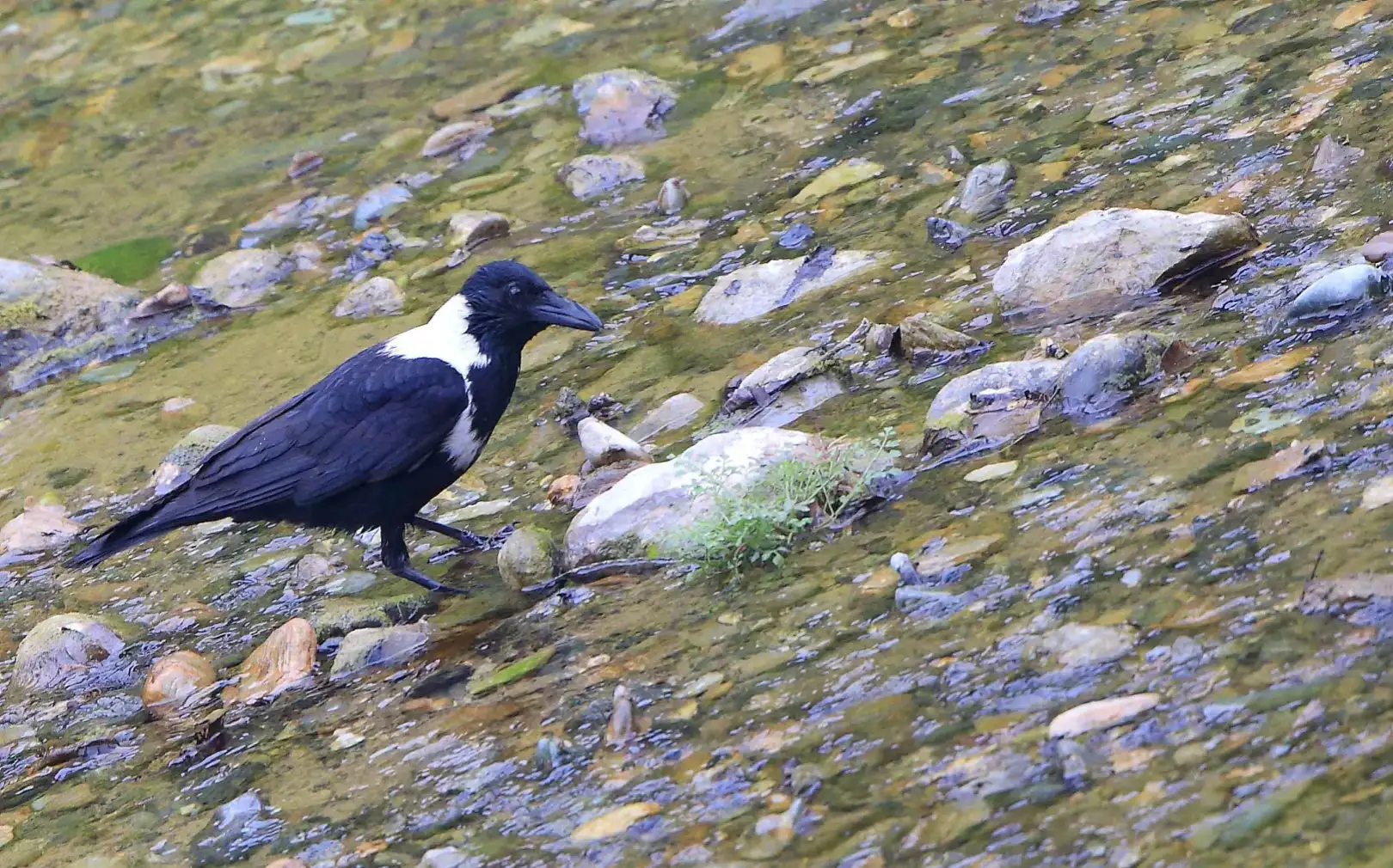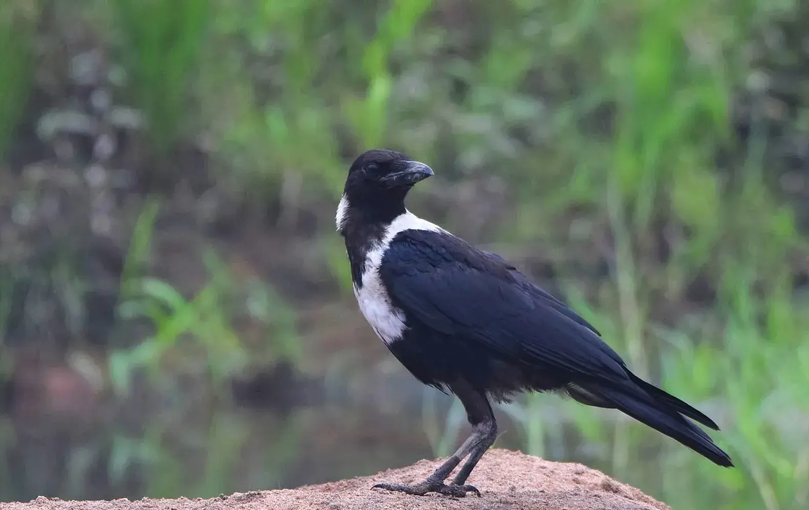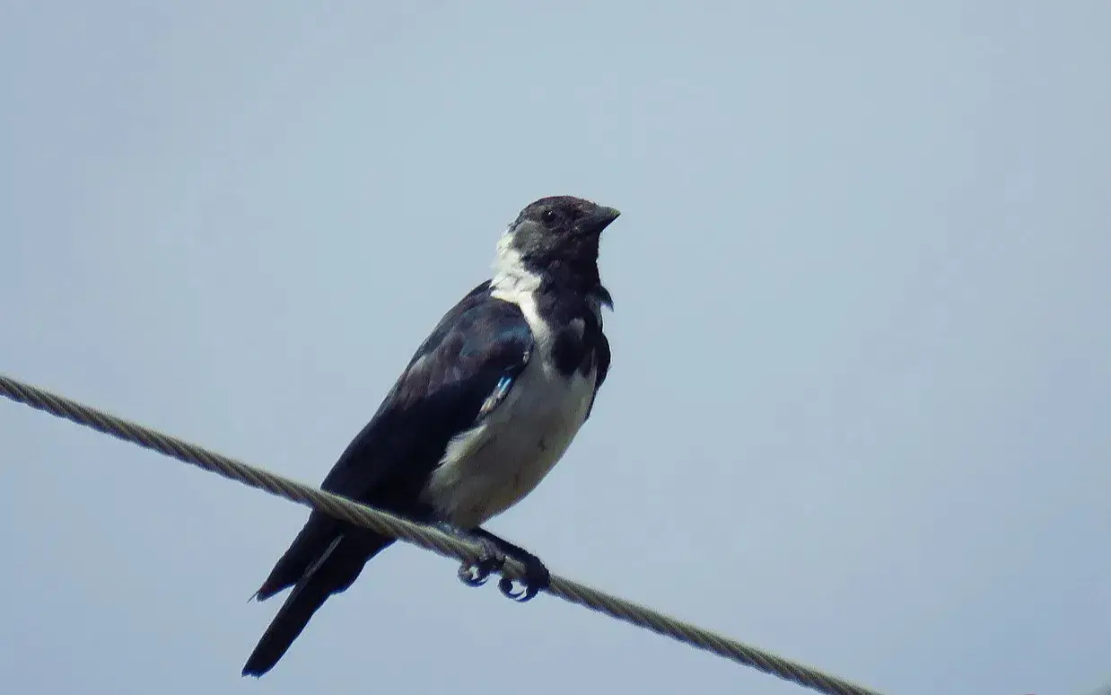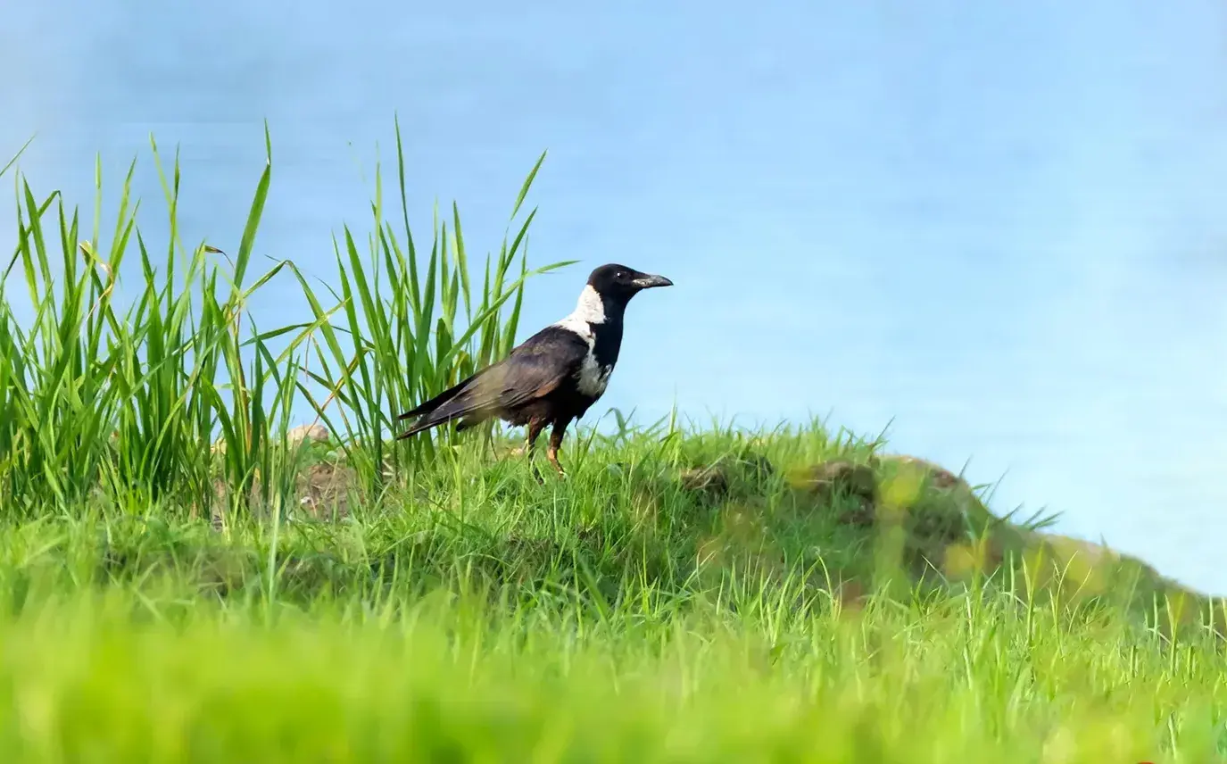 白颈鸦:雀形目、鸦科、鸦属鸟类,属中型鸟类。体长44-55厘米,体重385-700克。它们鸟喙为黑色,粗壮而尖利,爪子为黑色,眼睛也是黑色的。老话说:天下乌鸦一般黑,白颈鸦虽然也是鸦科的鸟类。但它们却也有白色。它们身上的羽毛以黑色为主,侧颈和后颈以及肩部有着一圈白色的羽毛。