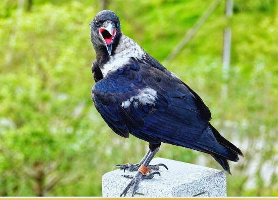 今天是10月14日,星期六,农历八月十三十,早安,今天介绍的是“白颈鸦”。