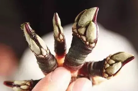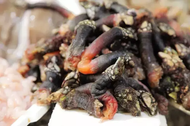 鬼脚螺(鬼爪螺),又叫狗爪螺,英文名Goose barnacle,在葡萄牙和西班牙一带尤为受欢迎,当地称之为 percebes,是藤壶的一种,属于海洋节肢动物,是一种生长在海边石缝中的贝类,靠海浪冲打过来时海水里的浮游生物为生,所以大多生活在海浪很大的礁石,不能被饲养。