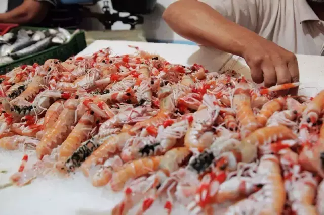 带斑点的虾,当地卖30元一斤,生吃很好吃,煮熟了肉就烂了