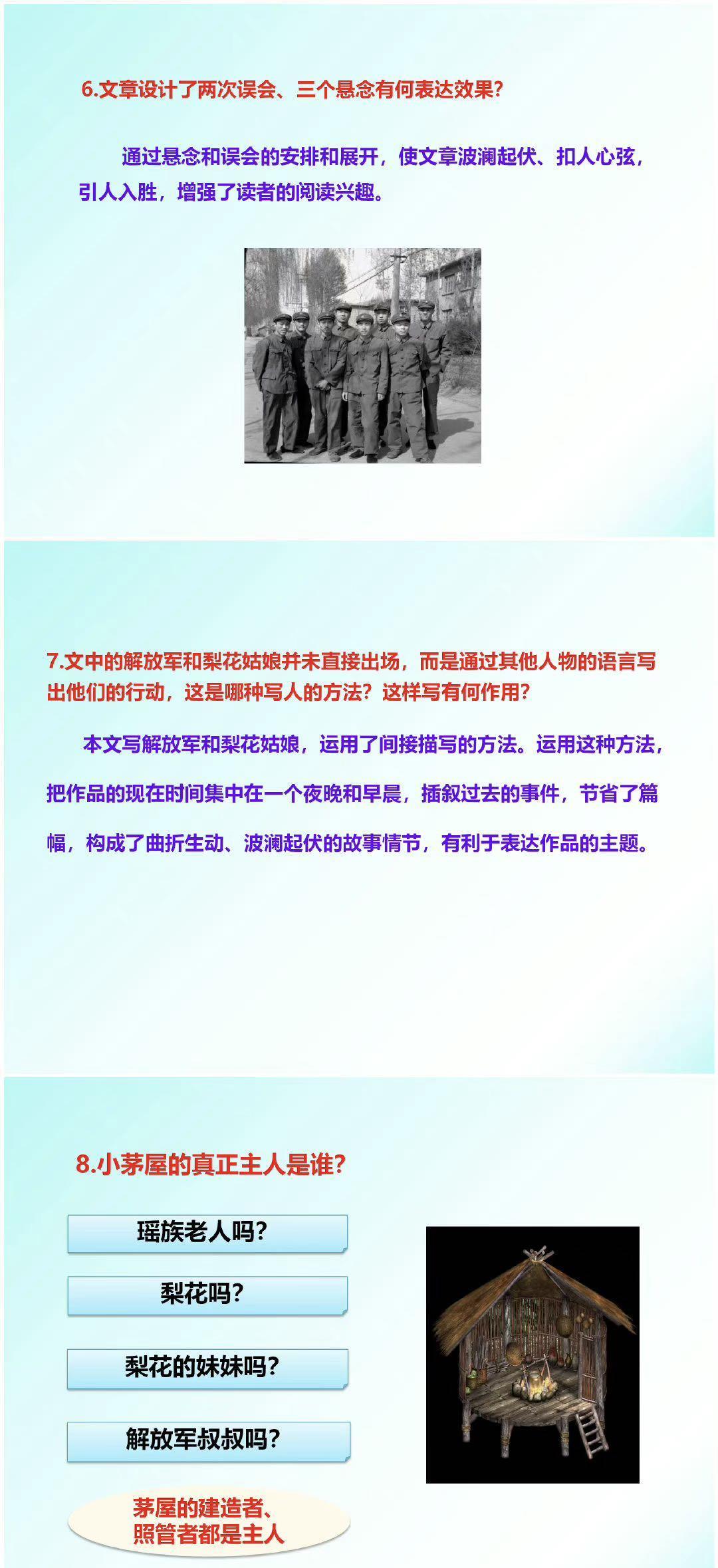 [微风]5.文章围绕“小茅屋的主人”设置了几个悬念?请在文中找出来,并进行概括。