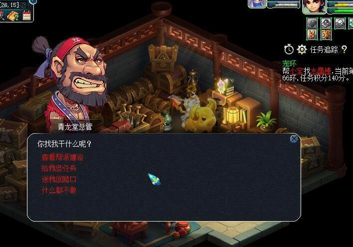 第三种用来增加帮派贡献的方式就是青龙堂任务,被大家简称为跑青龙,跑青龙是一个一系列的任务,帮派建设一般七级以下的帮派跑青龙的次数是比较多的,还会有对应的青龙奖励,帮派升到满级之后就基本上用不到青龙选手了,所以跑青龙必须得趁早。