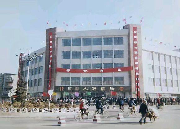 人民商场开业的庆典图片,那时候欢腾的场面,全是小彩旗。