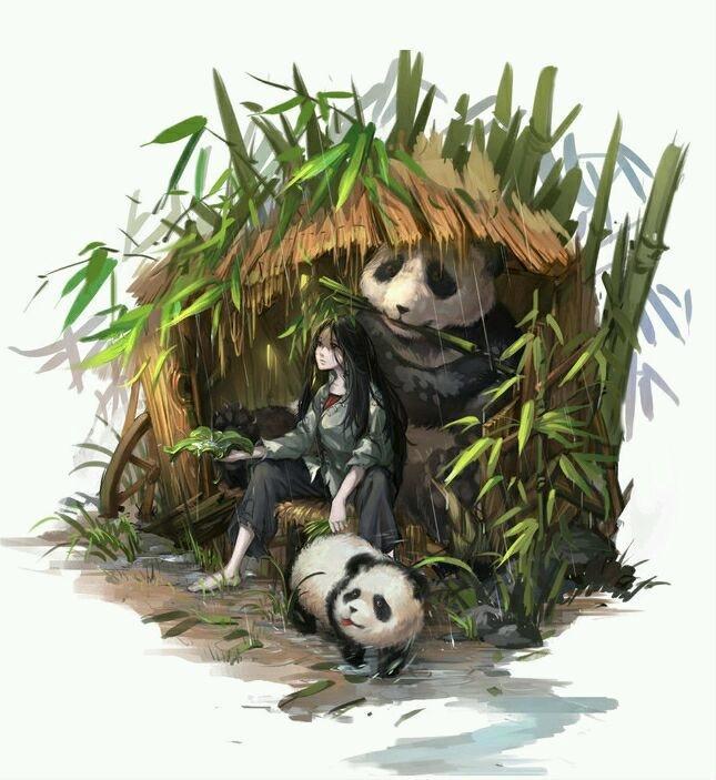 先来几张油墨风。可怜的宝儿姐躲在茅草下,和熊猫一起生活。