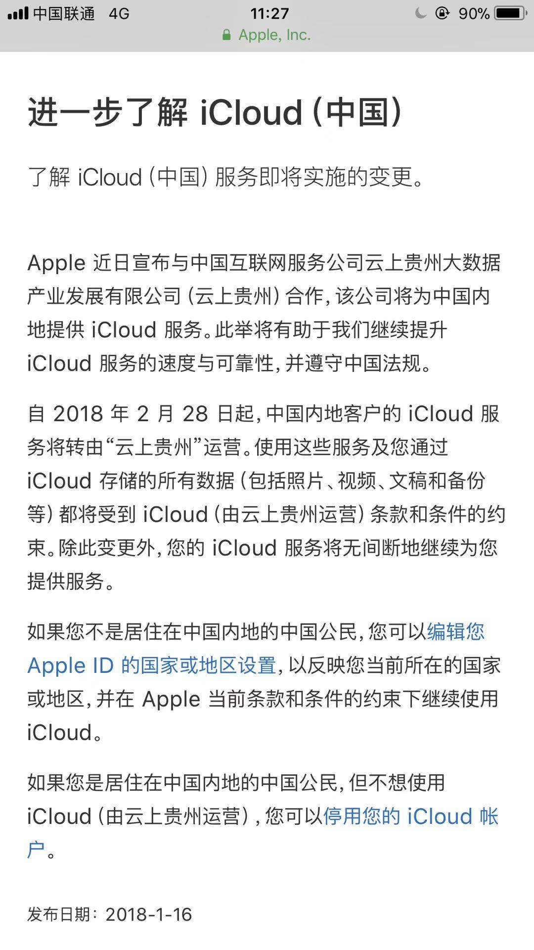 近日来许多iphone用户都收到一条关于中国内地icoud服务转为云上贵州的通知。