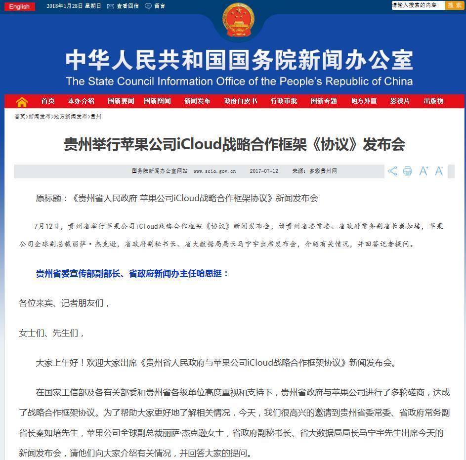 其实这次合照并不突然,早在2017年7月,贵州省就与苹果公司签订了关于icoud战略合作框架。