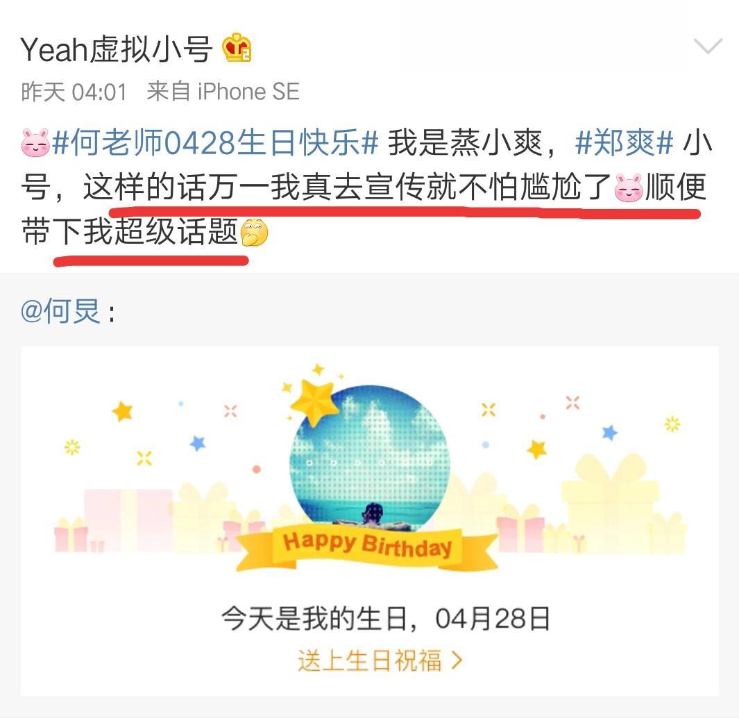 昨日湖南台当家主持何炅的生日,郑爽跟着上了一波热搜,原因是大家都祝何老师生日快乐,顺顺心心,只有郑爽另辟蹊径,祝福何老师生日快乐是因为马上要去快本宣传新节目,为了防止尴尬而祝福,还顺带提了下自己的超级话题。