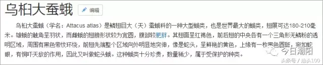 原来,这种“蛇头蝶”的学名为“乌桕大蚕蛾”,是世界上最大的蛾类,通常翅展可达180毫米至210毫米。