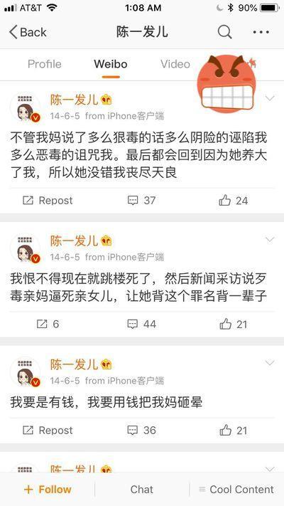在陈一发儿的道歉中除了对调侃“南京大屠杀”等历史事件,还对10-11年之间的愤世嫉俗的言论进行道歉,那么她在那几年到底说了什么呢?虽然陈一发儿的微博现在已经把之前的微博都清空了,可是小编费劲九牛二虎之力还是找到了几张之前的微博截图。
