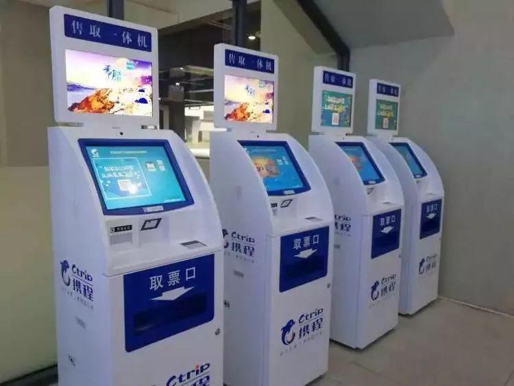 在右手边大厅一角有四台“售取一体机”,支持扫二维码购票。