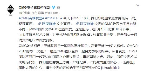夏季赛的OMG刚开始一度打到分区的第一名,然而赛程后期Smlz与管理层产生矛盾,在赛季末被管理层禁赛。