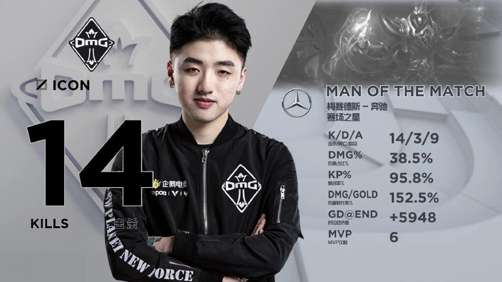 而OMG中单选手icon的死歌也以14/3/9的数据拿下了本赛季个人的第六次MVP。