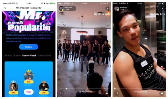 Manhunt世界男模大赛正是看中了Mico&Kitty Live在东南亚的影响力,才选择Kitty Live作为赛事唯一的直播平台,不但赛事全程在Kitty Live上直播,而且旗下所有入选模特均在Kitty Live上入驻开播,Kitty Live还成为了大赛的一个投票渠道。Kitty Live在应用内明显位置推广男模大赛,并为男模们设置了人气排行榜。
