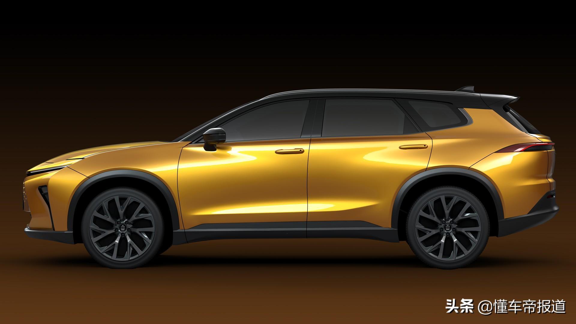 金色SUV的线条更硬朗,前脸风格酷似新能源车型