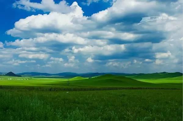 六月的乌兰布统草原,已经披上了最绿的衣裳,在天底下,一碧千里,而并不茫茫。只用绿色渲染,不用墨线勾勒的中国画那样,到处翠色欲流,轻轻流入云际。