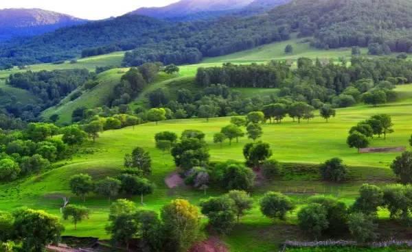 景区内连绵起伏的丘陵草原上点缀着或疏或密或丛丛簇簇的白桦树,幽静又极具情调。素有“欧式风光区"之称。