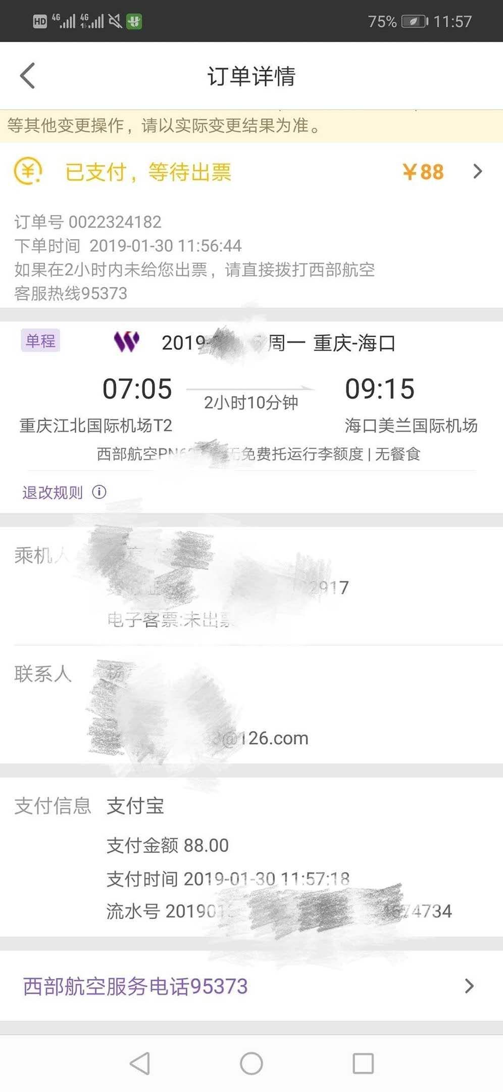 小编因为往返与海口与重庆之间,因为是海航旗下公司的缘故,西部航空从海口出发的航线还是很多,并且一般情况下,西部航空的价格确实较一般航空公司低。特别是每周三,西部航空会在飞行加(西部航空的手机APP)推出机票特卖,一般38/88不等,价格十分划算。比如,小编最近就抢购了一张从重庆飞往海口的机票,当时查询的正常航班价格是500元左右,而西部航空价格38元(另外50元是基建费),着实让小编心动不已。