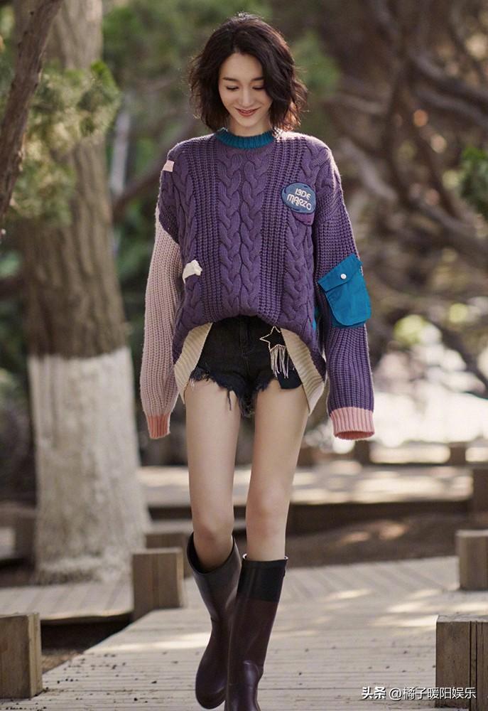 今年九月,李小冉在社交平台晒出最新美照。她身穿紫色毛衣,搭配超短裤和长筒靴,秀出大长腿。