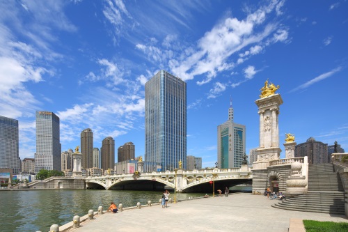 1896年7月21日,当时的清朝政府被迫与日本签订了《中日通商行船条约》。1898年8月29日,根据《中日通商行船条约》,清朝政府和日本签订了《天津日本租界协议书及附属议定书》,划定了日本租界。1903年日租界正式成立时,又进行了扩展,面积达到了2150亩。东临海河,东南沿秋山道(如今的锦州道)与法租界相连,南抵墙子河(现南京路),西至南门外大街,北起东南角闸口沿旭街(今和平路)两侧到福岛街(现多伦道)折向西。1939年,日本侵略者出于战争需要和运输物资的便利考虑,在在海河上建造了一座木桥,取名“日本桥"。日本桥西接原日租界的桥立街(今福安大街),东连原意租界雅斯德道(今河北区胜利路)。