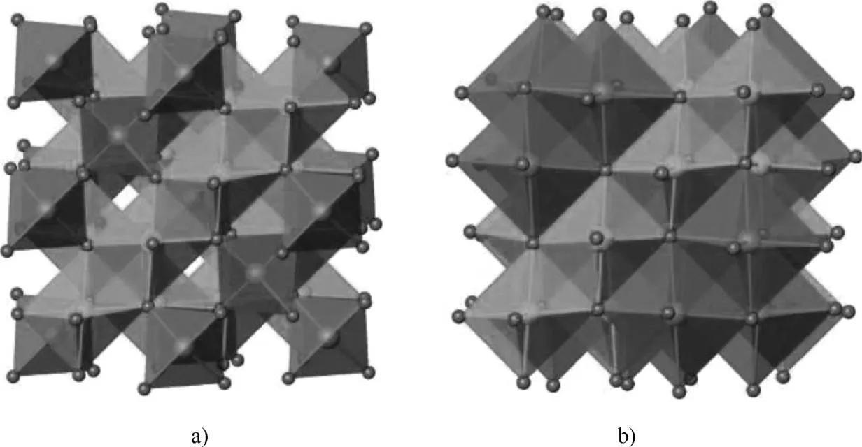 图1 钛酸锂晶体结构示意图 a)Li4Ti5O12 b)Li7Ti5O12