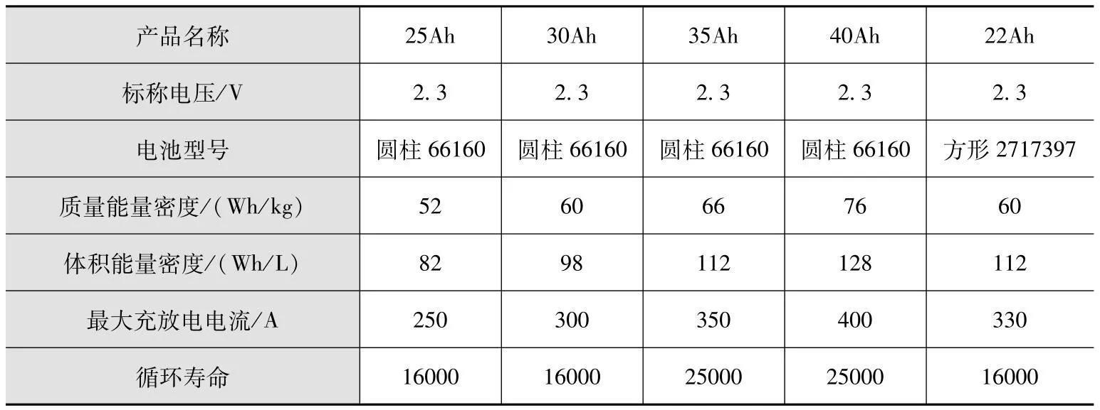 表3 能量型钛酸锂电池性能参数
