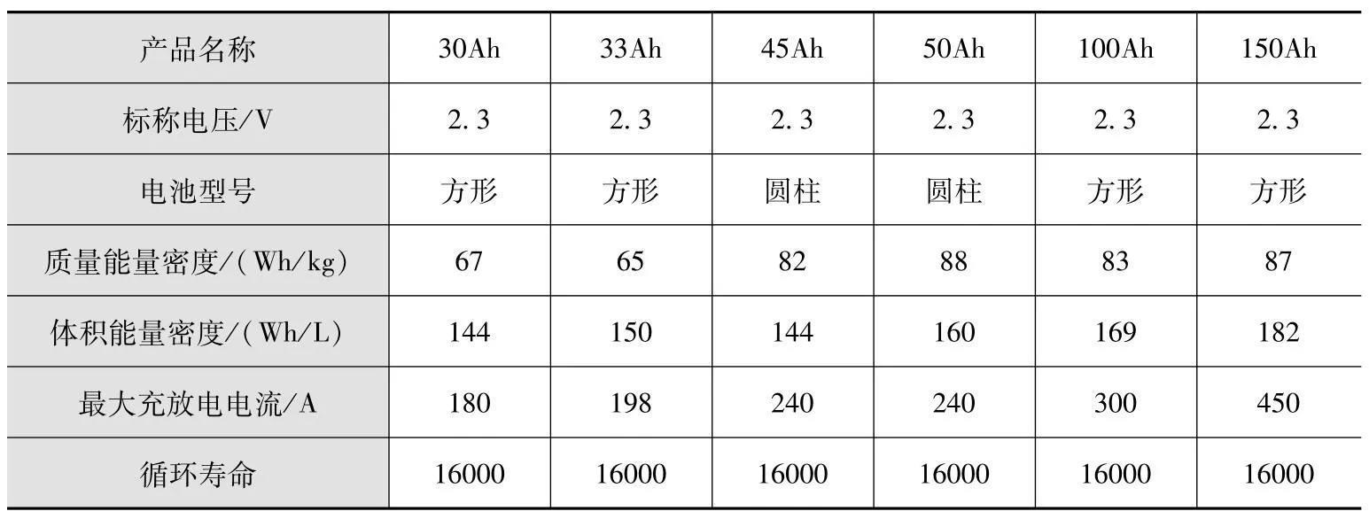 表2 功率型钛酸锂电池性能参数