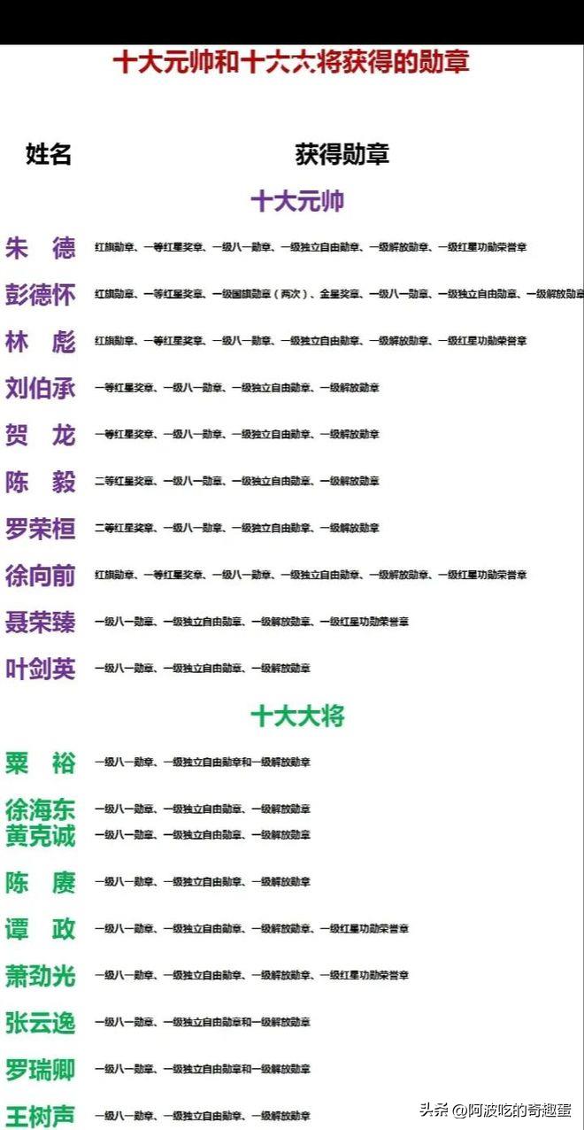 十大将之中:所有人都获得了三个一勋章,另外只有1988年时还健在的谭政和萧劲光获得过一级红星荣誉章。大将之中应该有在红军时期获得红星奖章,具体已无法确认…