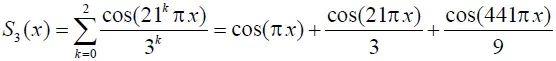 的图形是否会给我们一些启发呢?很遗憾,由于f是函数项的一个无穷级数,我们只能停留于画出部分函数和的图形。例如,我们在图9-8中仅画出第3个部分和