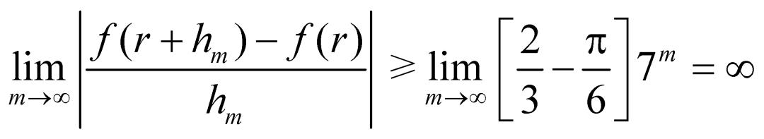 在x = r是不可微的。同时,由于r是一个未指定的实数,这就证实魏尔斯特拉斯定义的函数是无处可微的,尽管它是处处连续的函数。