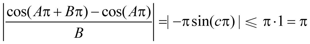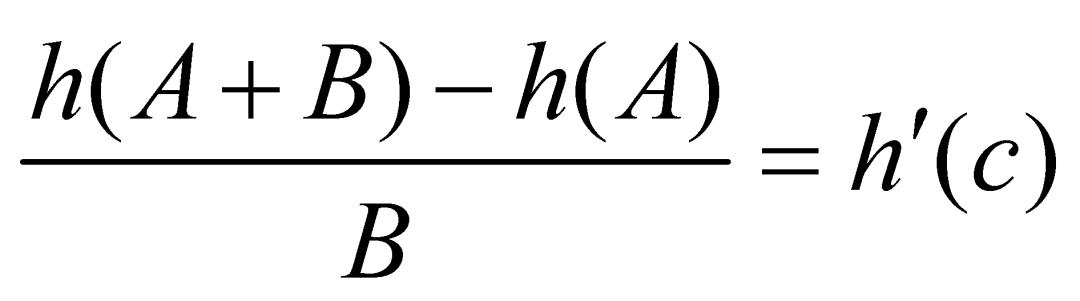 是区间[A, A + B]上的函数。根据中值定理,在A和A + B之间存在一点c,使得