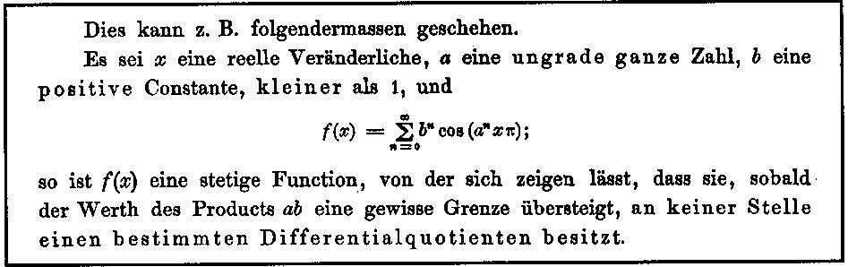 现在我们用魏尔斯特拉斯本人当初的表达方式介绍他的著名反例。