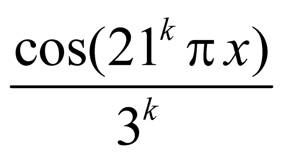 证明 显然,魏尔斯特拉斯在对a和b设置这些离奇的约束条件之前,已经进行了大量收集材料的准备工作。为了简化讨论,我们将取a = 21和b = 1/3。这种选择满足定理中设定的条件,因为 a ≥ 3 是一个奇数,b位于区间(0, 1)内,并且