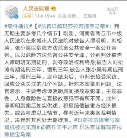 2020年11月6日,河南省商丘市中级人民法院公开了对“玛莎拉蒂撞宝马案”的最终判决。