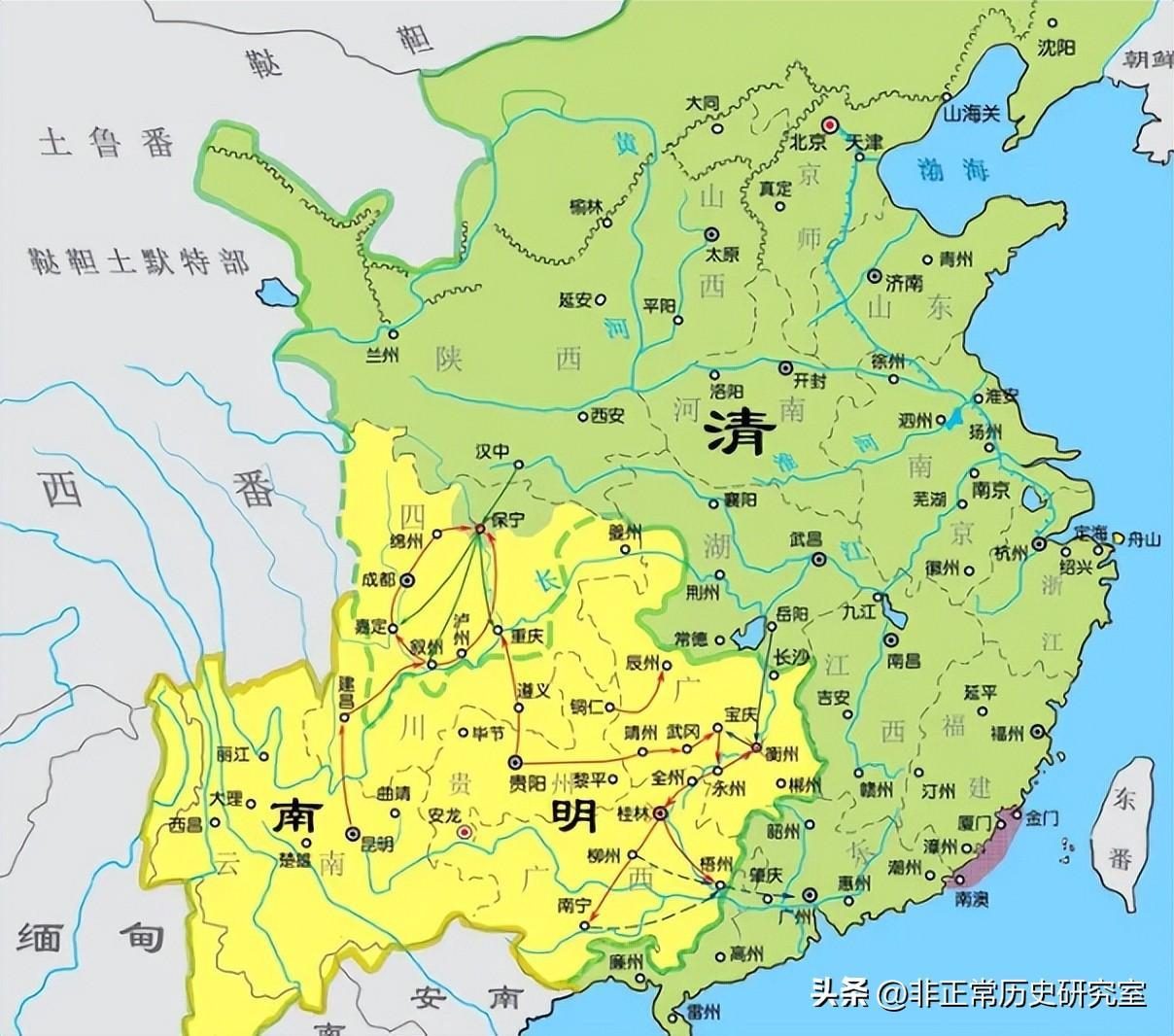 虽然南明历史看起来让人糟心,在不断的内斗中丧失南方大片领土,但在永历前期,南明并不是没有翻盘的可能,这就是和原先的大西政权联合抗清,在孙可望、李定国等人的联合下,以大西军余部为主体的明军对清军展开全面的反击,这就是永历六年的北伐。